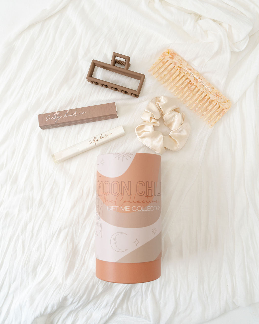 Christmas Gift packs are a collection of beautifully curated gift boxes that include everything one needs to achieve perfect, salon-worthy hair. Each gift pack includes a variety of hair care essentials from the Moon Child brand that are designed to cater to different hair types and hair styling needs.
